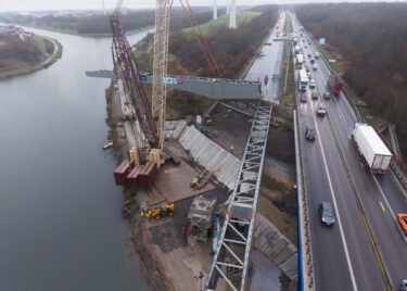 N50 – Hautrage : pose de la charpente métallique du pont du goulet de la darse